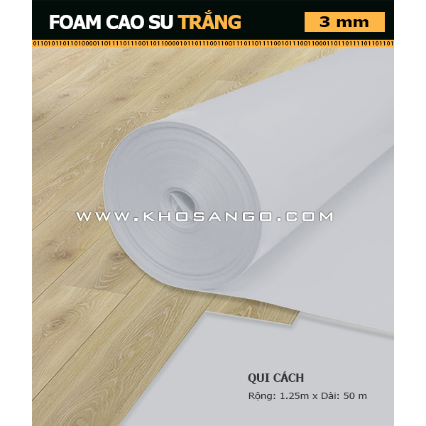 Foam Cao Su Trắng là phụ kiện bắt buộc phải có khi lót sàn gỗ công nghiệp hay sàn gỗ tự nhiên Công dụng của foam: - Cân bằng mặt sàn, bù đắp những kiếm khuyết lồi lõm của mặt bê tông hay gạch - Ngăn hơi ẩm từ dưới lên sàn gỗ - Giảm tiếng ồn và cách âm